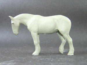 All the Animal Artistry horses are produced here on site. I make and cut all of my own moulds, but then pass the casting on to either Charles, my partner, or Sam my son. After the fettling and pin hole repairing (if necessary) they will have an undercoat of gesso. Now they are ready to paint, and they are passed onto Joanna the air brush artist who will transform them with coats of acrylic paint.