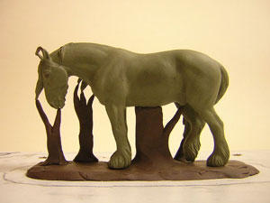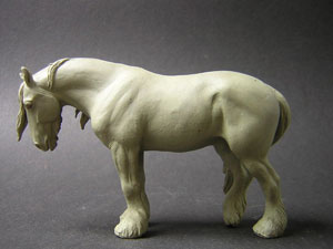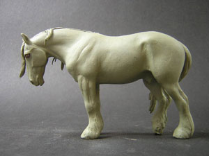 All of my original artwork is made of wax or of a wax/clay mixture. I rarely use armatures for the small pieces – only resorting to them for the larger horses. I always try to work on the horse or dog as a whole piece, never concentrating on any one part until I am happy with the overall feel of the new original sculpture. Usually to make 90% of the horse will take approximately 10% of the total time taken, and the last finishing details that you think will be quickly finished end up taking 90% of the overall time spent.
